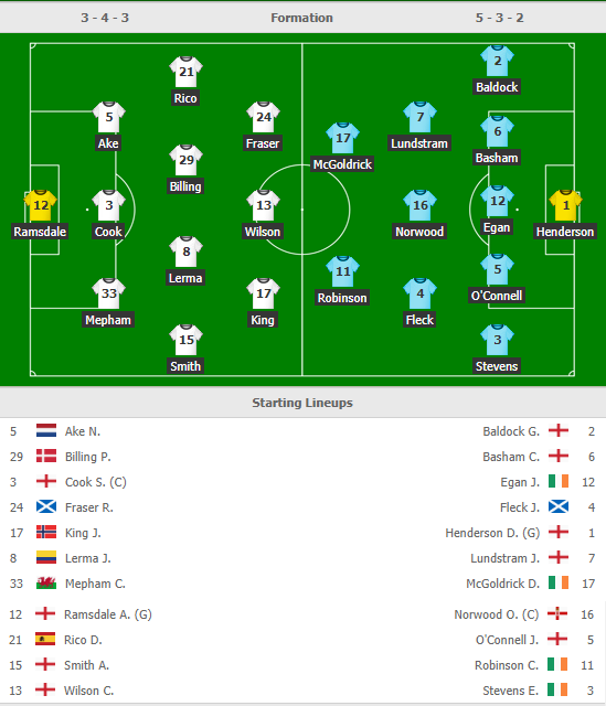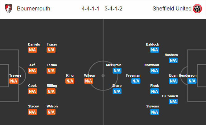 AEGoal.net cập nhật chính xác ĐỘI HÌNH RA SÂN trận Bournemouth vs Sheffield United diễn ra lúc 21h00 ngày 10/8 trong khuôn khổ vòng 1 giải Ngoại hạng Anh