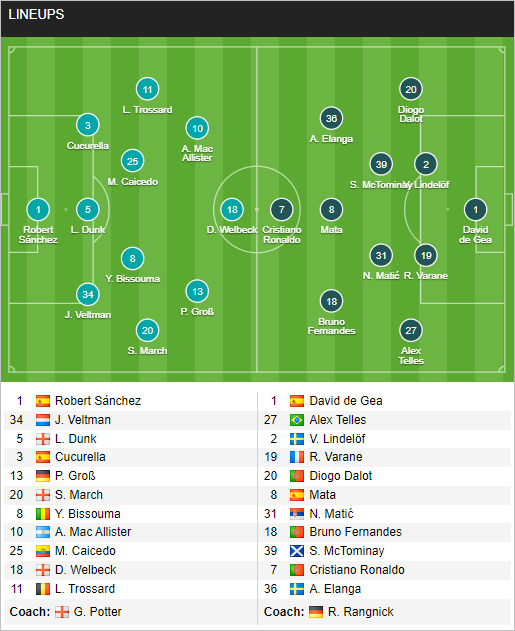 - Brighton: Sarmiento, Jakub Moder, Mwepu chấn thương.