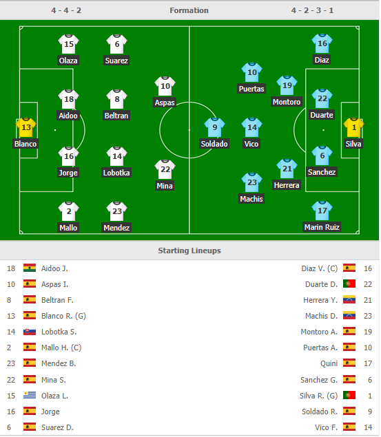 * Celta Vigo: David Costas, Rafinha chấn thương còn David Juncà và Yokuslu bỏ ngỏ khả năng ra sân.