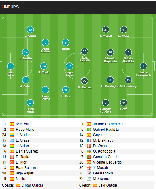 AEGoal.net cập nhật chính xác ĐỘI HÌNH RA SÂN trận Celta Vigo vs Valencia diễn ra lúc 02h00 ngày 20/09 trong khuôn khổ vòng 1 giải VĐQG Tây Ban Nha.