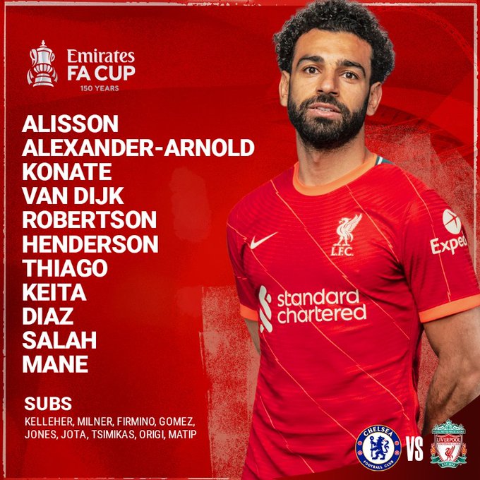 AEGoal cập nhật chính xác ĐỘI HÌNH RA SÂN trận Chelsea vs Liverpool diễn ra lúc 22h45 ngày 14/05 trong khuôn khổ chung kết cúp FA.