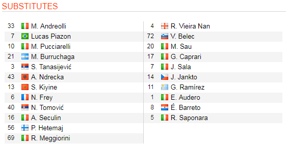 - Chievo: Vắng Ezequiel Schelotto, Luca Rossettini (chấn thương) và Nicola Rigoni (treo giò).