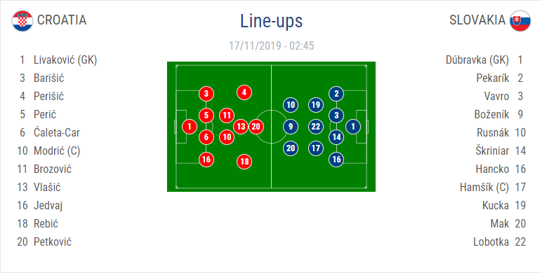 AEGoal.net cập nhật chính xác ĐỘI HÌNH RA SÂN trận Croatia vs Slovakia diễn ra lúc 02h45 ngày 17/11 trong khuôn khổ Bảng E - Vòng loại EURO 2020.