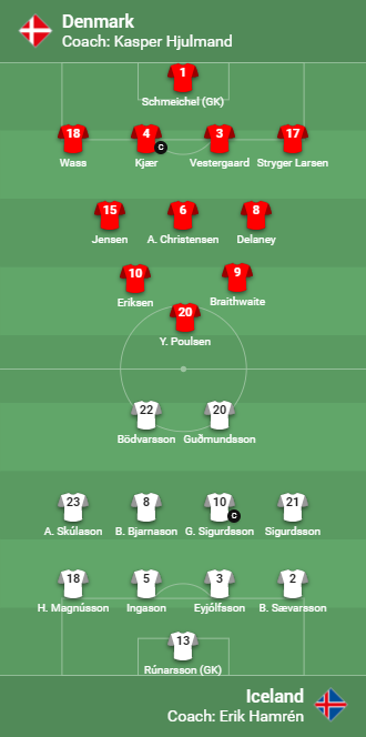 AEGoal cập nhật chính xác ĐỘI HÌNH RA SÂN trận Đan Mạch vs Iceland diễn ra lúc 02h45 ngày 16/11 trong khuôn khổ UEFA Nations League.