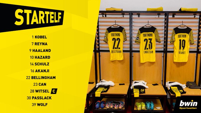 Dortmund: Mateu Morey, Thomas Meunier, Manuel Akanji, Youssoufa Moukoko, Marcel Schmelzer, Steffen Tigges chấn thương. Jude Bellingham, Mats Hummels, Raphael Guerreiro. Dan-Axel Zagadou, Erling Haaland chưa chắc ra sân. Marco Reus không được đăng ký. Mahmoud Dahoud treo giò.