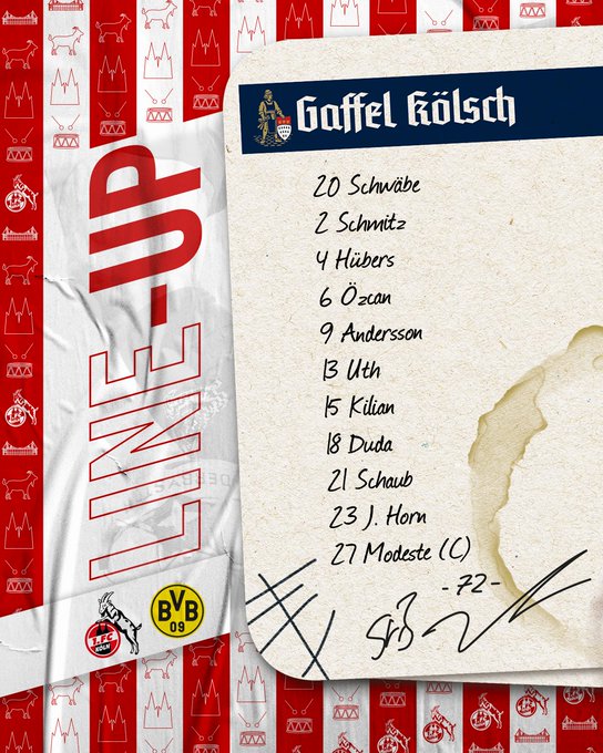 AEGoal cập nhật chính xác ĐỘI HÌNH RA SÂN trận FC Koln vs Dortmund diễn ra lúc 01h30 ngày 21/03 trong khuôn khổ giải VĐQG Đức.