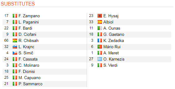 * Danh sách dự bị trận Frosinone vs Napoli, 17h30 ngày 28/4: VĐQG Italia