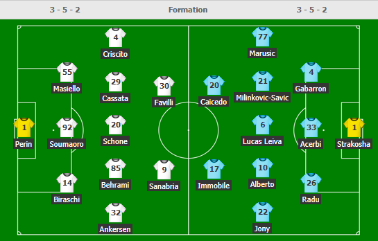 - Lazio: Vắng Senad Lulic (chấn thương) và Luiz Felipe (treo giò).