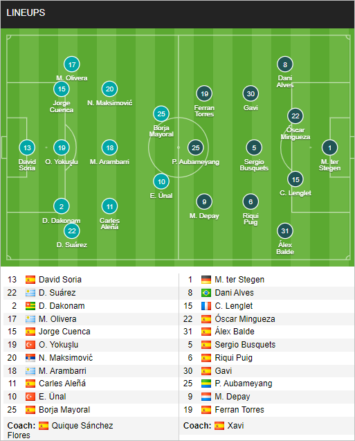 Barcelona: Eric García, Frenkie De Jong và Jordi Alba bị treo giò, Sergi Roberto, Pedri và Moussa Wague chấn thương.