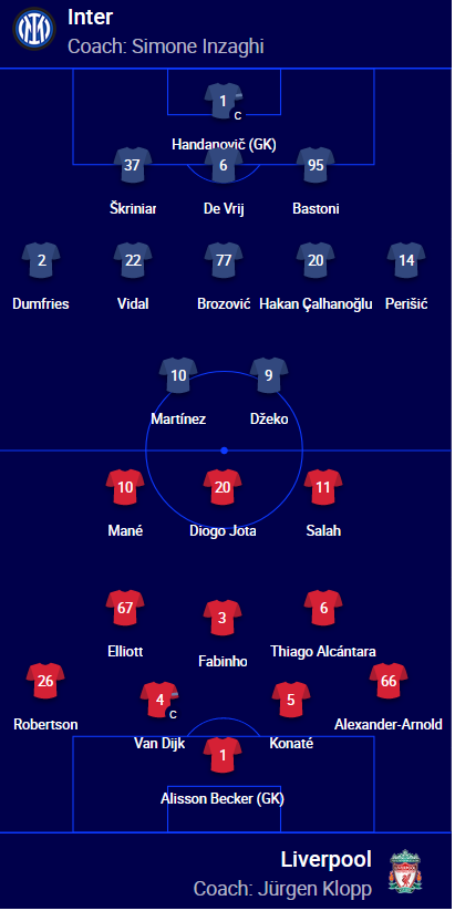 ĐỘI HÌNH RA SÂN trận Inter Milan vs Liverpool 03h00