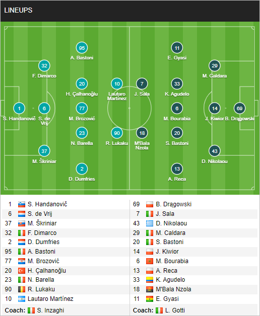 AEGoal cập nhật chính xác ĐỘI HÌNH RA SÂN trận Inter Milan vs Spezia diễn ra lúc 01h45 ngày 21/08 trong khuôn khổ giải VĐQG Italia.