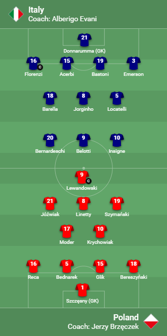 AEGoal cập nhật chính xác ĐỘI HÌNH RA SÂN trận Italia vs Ba Lan diễn ra lúc 02h45 ngày 16/11 trong khuôn khổ UEFA Nations League.
