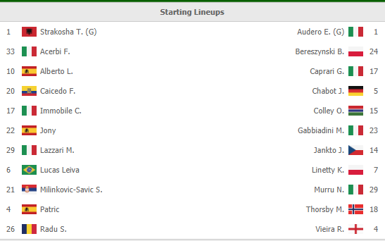 Lazio: Strakosha, Radu, Acerbi, Felipe, Lulic, Alberto, Leiva, Milinkovic-Savic, Lazzari, Correa, Immobile.