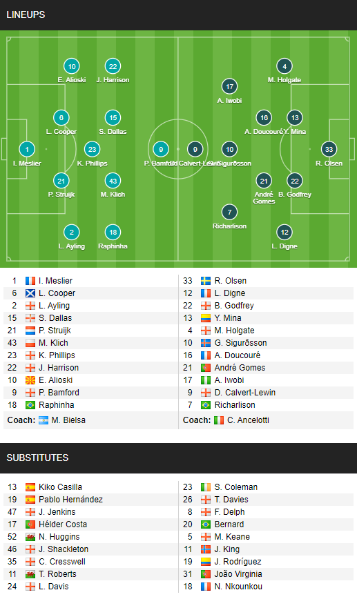AEGoal cập nhật chính xác ĐỘI HÌNH RA SÂN trận Leeds vs Everton diễn ra lúc 02h30 ngày 04/02 trong khuôn khổ giải Ngoại hạng Anh.