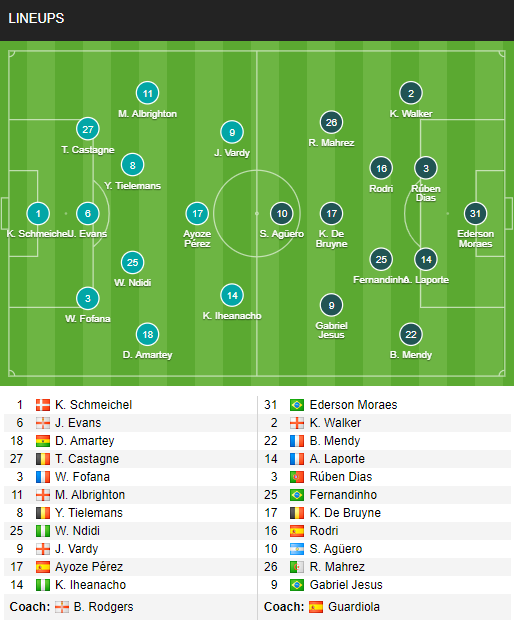 AEGoal cập nhật chính xác ĐỘI HÌNH RA SÂN trận Leicester City vs Man City diễn ra lúc 23h30 ngày 03/04 trong khuôn khổ Vòng 30 - Ngoại hạng Anh