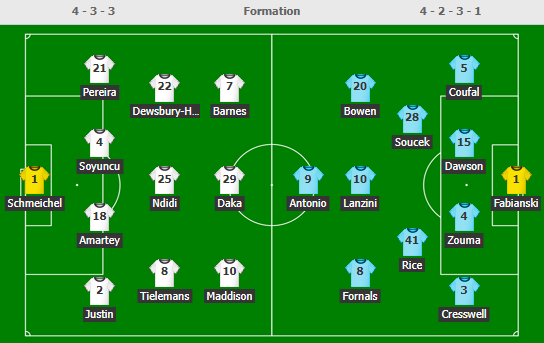 AEGoal cập nhật chính xác ĐỘI HÌNH RA SÂN trận Leicester City vs West Ham diễn ra lúc 23h30 ngày 13/02 trong khuôn khổ giải Ngoại hạng Anh.