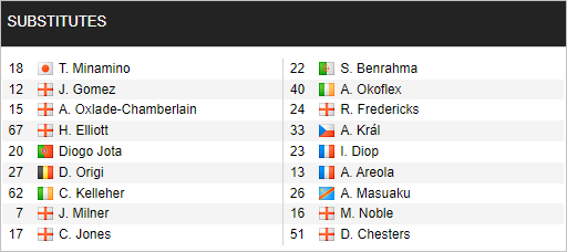 Liverpool: Roberto Firmino, Thiago, Joel Matip chấn thương, khả năng ra sân của Curtis Jones và Naby Keita còn bỏ ngỏ.
