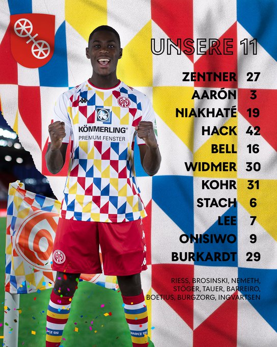 - Mainz: Jeremiah St. Juste vắng mặt vì chấn thương.