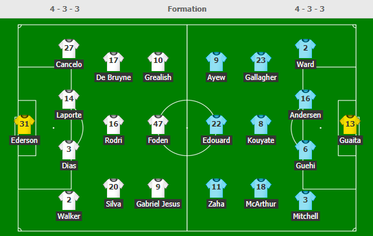AEGoal cập nhật chính xác ĐỘI HÌNH RA SÂN trận Man City vs Crystal Palace diễn ra lúc 21h00 ngày 30/10 trong khuôn khổ giải Ngoại hạng Anh