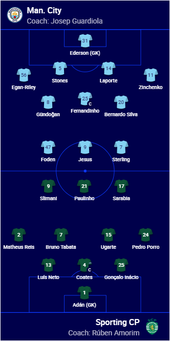 AEGoal cập nhật chính xác ĐỘI HÌNH RA SÂN trận Man City vs Sporting Lisbon diễn ra lúc 03h00 ngày 10/03 trong khuôn khổ UEFA Champions League.