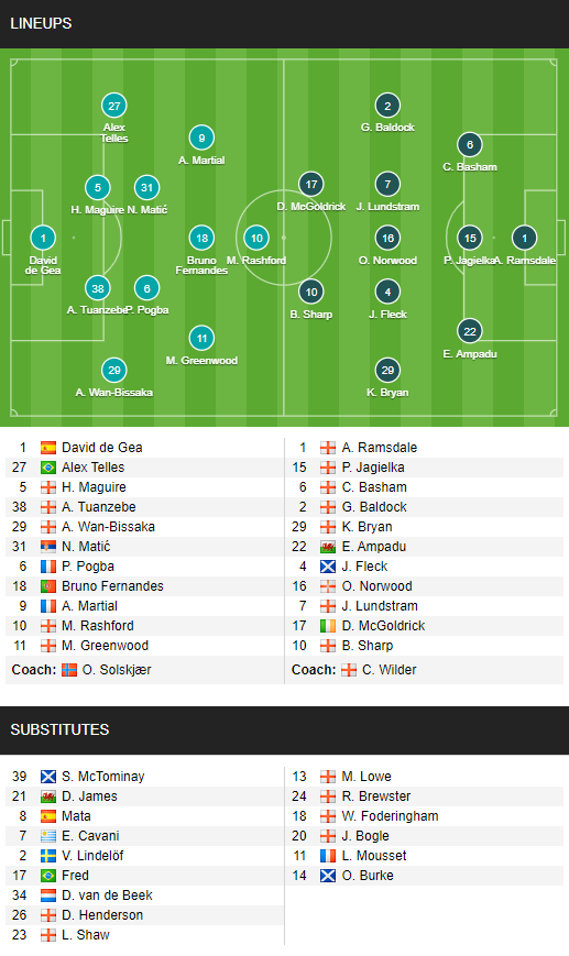 AEGoal cập nhật chính xác ĐỘI HÌNH RA SÂN trận Man Utd vs Sheffield Utd diễn ra lúc 03h15 ngày 27/01 trong khuôn khổ vòng 20 - giải Ngoại hạng Anh.