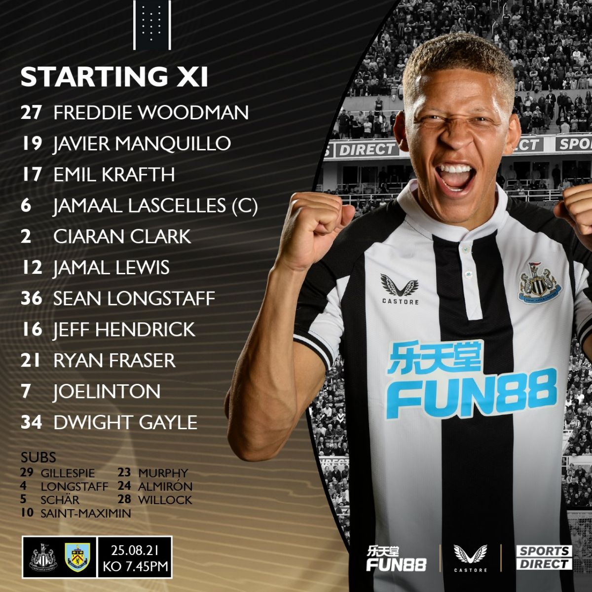 Newcastle (3-5-2): Freddie Woodman; Ciaran Clark, Jamaal Lascelles, Federico Fernandez; Matt Ritchie, Jacob Murphy, Isaac Hayden, Miguel Almiron, Joe Willock; Allan Saint-Maximin, Callum Wilson