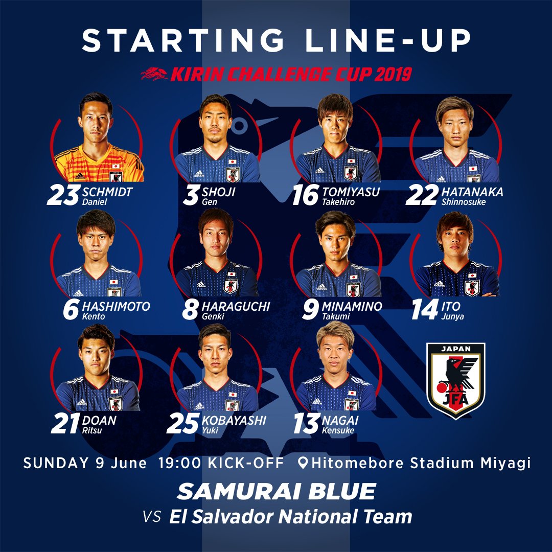 AEGoal.net cập nhật chính xác ĐỘI HÌNH RA SÂN trận Nhật Bản vs El Salvador diễn ra lúc 17h00 ngày 09/6 trong khuôn khổ trận giao hữu quốc tế (Kirin Cup)