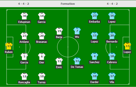 - Espanyol: Vắng Sebastien Corchia (chấn thương); Khả năng ra sân của Marc Roca còn bỏ ngỏ.