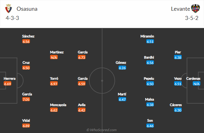 ĐỘI HÌNH RA SÂN trận Osasuna vs Levante, 00h30 ngày 20/03: VĐQG Tây Ban Nha
