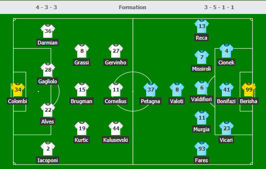 Parma: Juraj Kucka, Roberto Inglese, Alberto Grassi, Luigi Sepe, Vincent Laurini, Matteo Scozzarella và Antonino Barilla vắng mặt vì chấn thương.