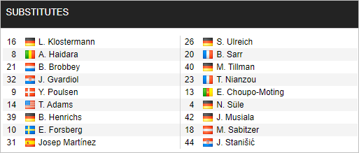 RB Leipzig: Gulacsi; Klostermann, Orban, Simakan, Gvardiol; Adams, Haidara; Szoboszlai, Forsberg, Nkunku; Silva
