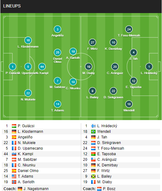 AEGoal cập nhật chính xác ĐỘI HÌNH RA SÂN trận RB Leipzig vs Leverkusen diễn ra lúc 00h30 ngày 31/1 trong khuôn khổ Vòng 19 - VĐQG Đức.