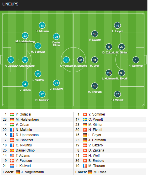 ĐỘI HÌNH RA SÂN trận RB Leipzig vs Monchengladbach, 00h30 ngày 28/2: VĐQG Đức