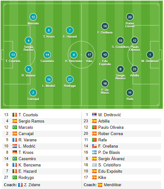 AEGoal.net cập nhật chính xác ĐỘI HÌNH RA SÂN trận Real Madrid vs Eibar diễn ra lúc 00h30 ngày 15/6 trong khuôn khổ vòng 28 giải VĐQG Tây Ban Nha.