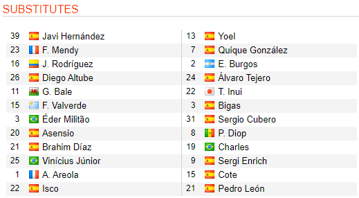 - Real Madrid: Vắng Nacho và Luka Jovic (chấn thương).