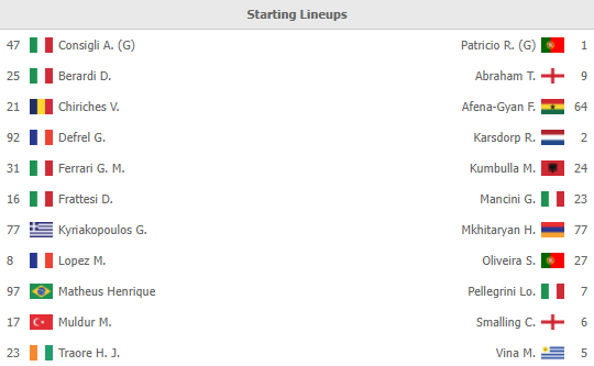 - Địa điểm: Sân MAPEI (Reggio nell'Emilia)