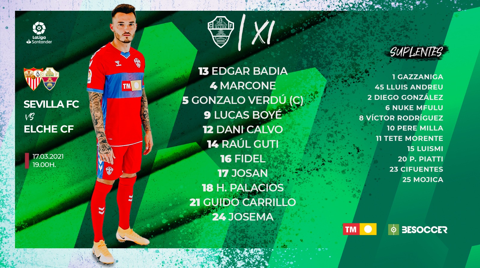 - Elche: Khả năng ra sân của Antonio Barragan còn bỏ ngỏ.