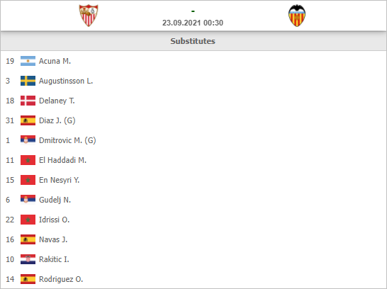 * Danh sách dự bị trận Sevilla vs Valencia, 00h30 ngày 23/9: VĐQG Tây Ban Nha