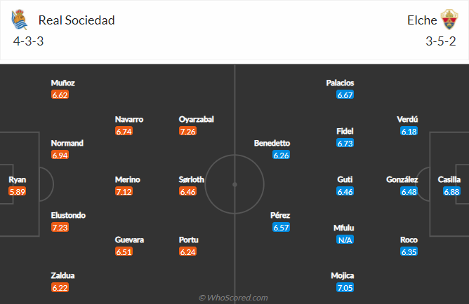 ĐỘI HÌNH RA SÂN trận Sociedad vs Elche, 23h30 ngày 26/9: VĐQG Tây Ban Nha