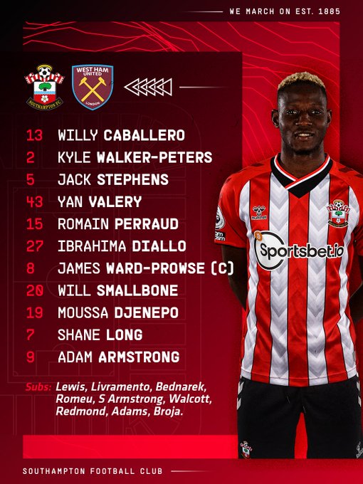 - HLV Ralph Hasenhuttl có thể thực hiện thay đổi với đội hình ra sân khi những Yan Valery, Willy Caballero, Thierry Small và Ibrahima Diallo có thể sẽ bắt đầu ở đây.