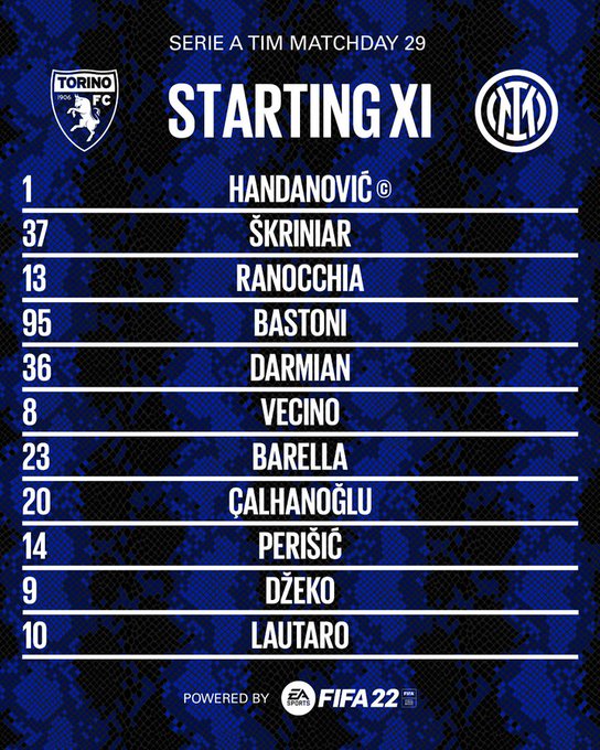 ĐỘI HÌNH RA SÂN trận Torino vs Inter Milan, 02h45 ngày 14/3: VĐQG Italia