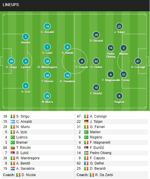 AEGoal cập nhật chính xác ĐỘI HÌNH RA SÂN trận Torino vs Sassuolo diễn ra lúc 21h00 ngày 17/03 trong khuôn khổ VĐQG Italia