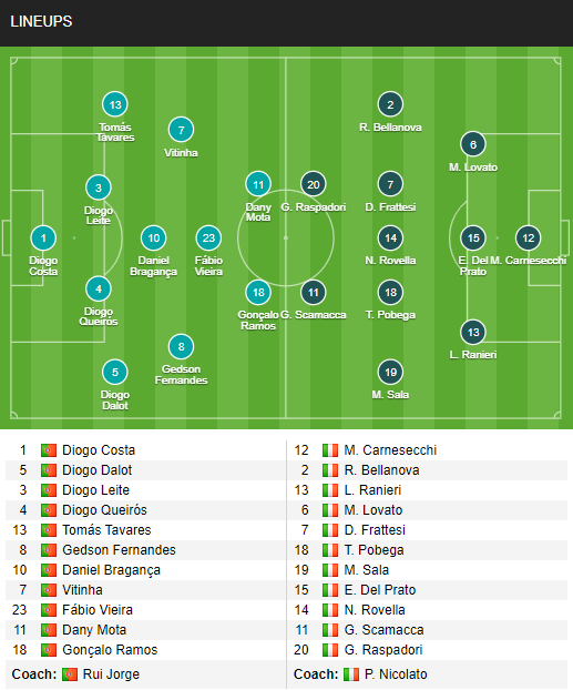 AEGoal cập nhật chính xác ĐỘI HÌNH RA SÂN trận U21 Bồ Đào Nha vs U21 Italia diễn ra lúc 02h00 ngày 01/6 trong khuôn khổ VCK U21 Châu Âu.