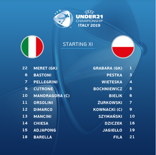 ĐỘI HÌNH RA SÂN trận U21 Italia vs U21 Ba Lan, 02h00 ngày 20/6: VCK U21 Châu Âu 2019