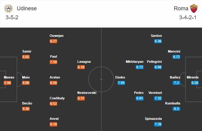 ĐỘI HÌNH RA SÂN trận Udinese vs AS Roma, 01h45 ngày 04/10: VĐQG Italia