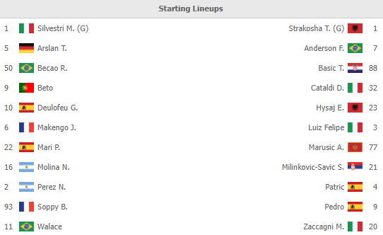 Udinese: Silvestri; Becao, Mari, Perez; Molina, Arslan, Walace, Makengo, Soppy; Deulofeu, Beto
