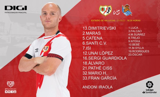 AEGoal cập nhật chính xác ĐỘI HÌNH RA SÂN trận Vallecano vs Sociedad diễn ra lúc 23h30 ngày 01/5 trong khuôn khổ giải VĐQG Tây Ban Nha.