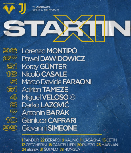 AEGoal cập nhật chính xác ĐỘI HÌNH RA SÂN trận Verona vs Juventus diễn ra lúc 23h00 ngày 30/10 trong khuôn khổ giải VĐQG Italia