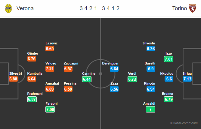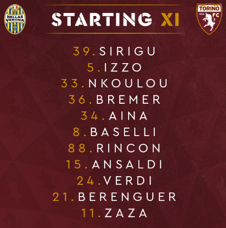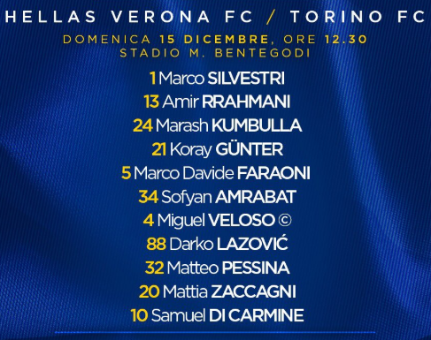 AEGoal.net cập nhật chính xác ĐỘI HÌNH RA SÂN trận Verona vs Torino diễn ra lúc 18h30 ngày 15/12 trong khuôn khổ Vòng 16 - VĐQG Italia