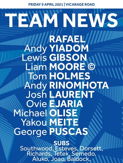 Reading (4-2-3-1): Cabral; Yiadom, Holmes, Moore, Gibson; Rinomhota, Laurent; Meite, Olise, Ejaria; Joao.